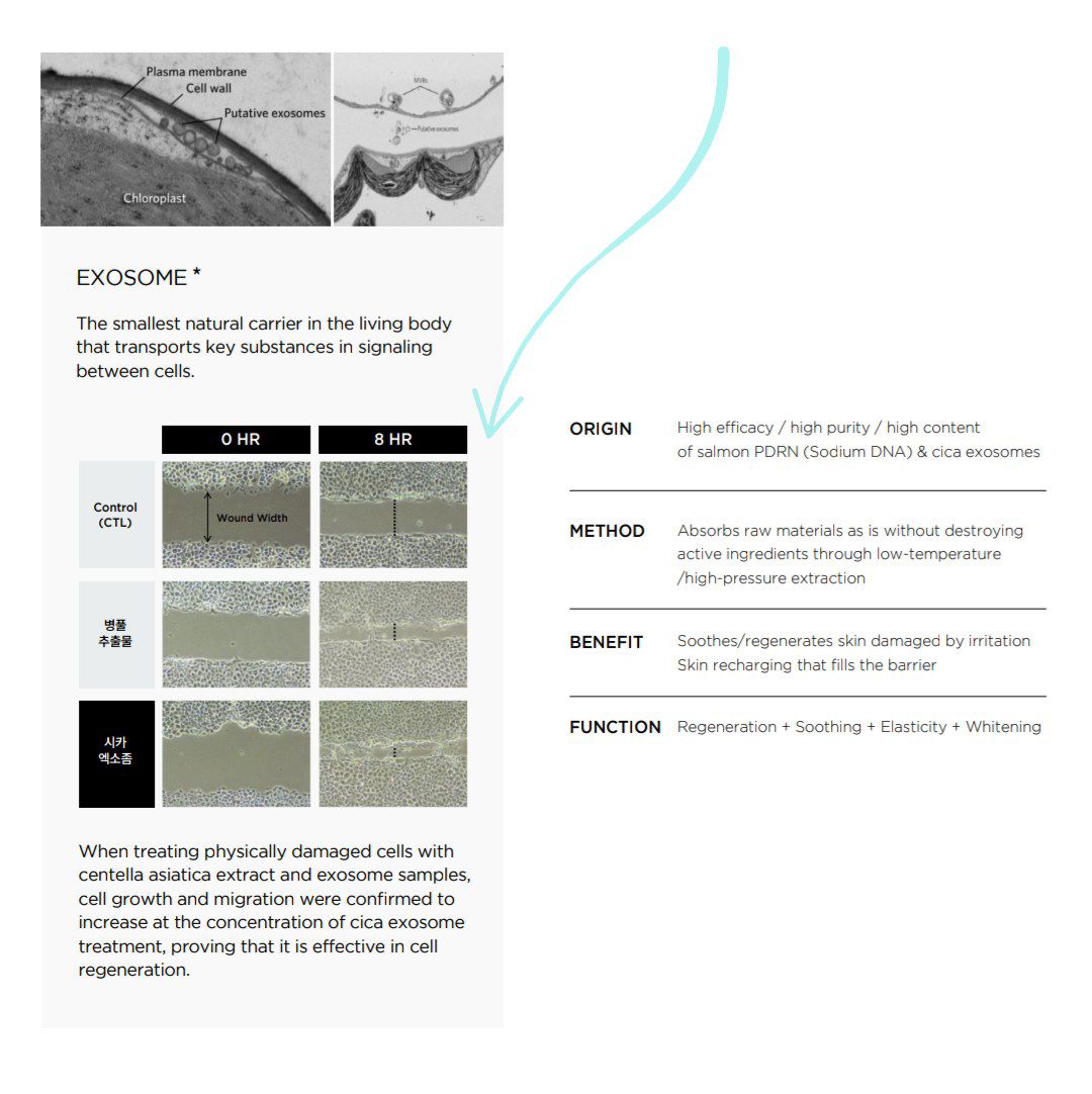 اگزوزوم ها وزیکول های سلولی کوچکی هستند که برای تحریک پوست به جوانسازی استفاده میشند، اگزوزوم های موجود در این ماسک از گیاه سیکا گرفته شده که علاوه بر تحریک پوست به نوسازی اثرات ضدالتهابی دارد