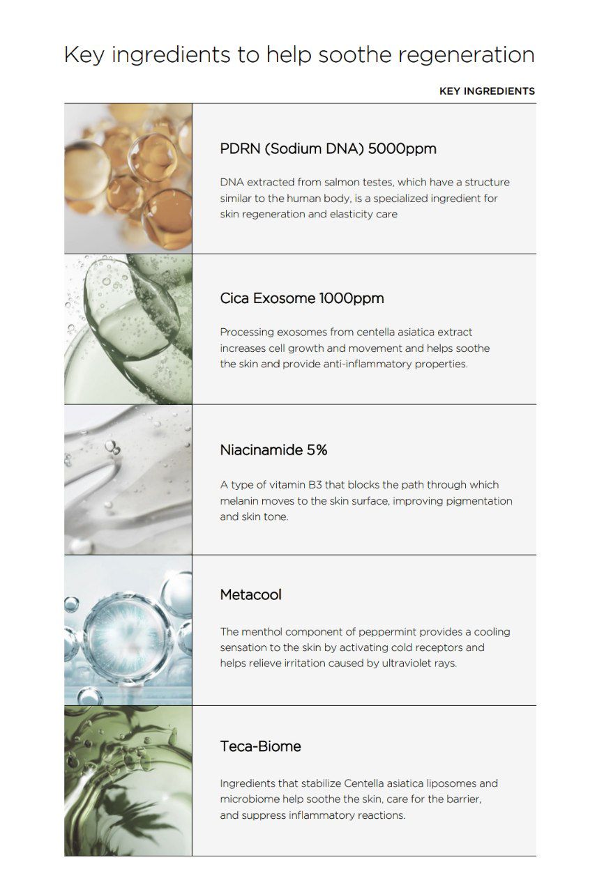 این ترکیب خیلی خاص و جالبه! مولکول های عصاره سیکا رو به صورت لیپوزومال در میارن تا جذب عمیقتری داشته باشه و بعد با میکروبیوم های مختلف ترکیبش میکنند و تکا بایوم تولید میشه و خاصیت ترمیم کنندگی و ضد التهابی داره